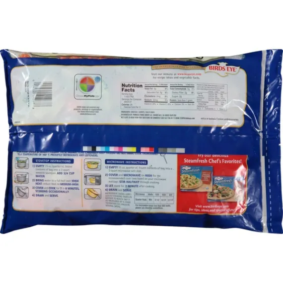 Details Ingredients BROCCOLI, CARROTS, CAULIFLOWER. Product features Take your cuisine to the next level with a delectable medley of vegetables in this Bird's Eye California Blend bag. Each easily resealable package contains 60 oz of product which contains zero preservatives. This kosher California vegetables blend includes broccoli, cauliflower and sweet young carrots, which can be used in Asian inspired stir fry dishes or as a side for roasted chicken and mashed potatoes. Bird's Eye California Blend Vegetables: Premium mix of garden broccoli, sweet young carrots and cauliflower No preservatives Resealable package Kosher 60 oz bag of veggies Fresh frozen deluxe vegetables Use for stir fry dishes Tasty and healthy side dish Easy-to-prepare vegetables Special Features Heart healthy Net Quantity of Content 22 X 1 cup