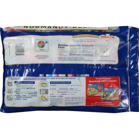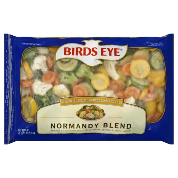 Details Ingredients BROCCOLI, CAULIFLOWER, CARROTS, ZUCCHINI, YELLOW SQUASH. Product features Take any meal to the next level with this 60 oz Bag of Birds Eye Normandy Blend. It has no preservatives, trans fat or cholesterol, making it a healthy addition to lunch or dinner. This bag of Birds Eye frozen vegetables contains a mix of broccoli and cauliflower florets, sliced carrots, zucchini and yellow squash. Birds Eye Normandy Blend, 60 oz Bag: No preservatives Resealable package Kosher Parve Freshly frozen deluxe vegetables Broccoli and cauliflower florets, sliced carrots, zucchini and yellow squash No trans fat or cholesterol Serve as a side dish or as part of a main entree Normandy blend vegetables come in a 60 oz bag Special Features Heart healthy Net Quantity of Content 23 X 0.75 cup