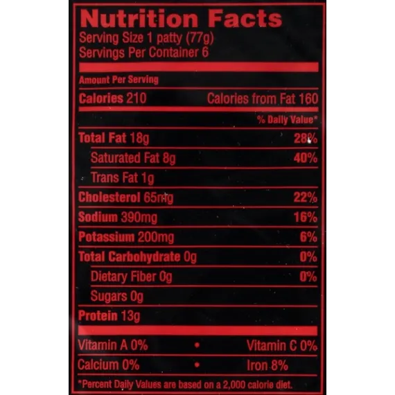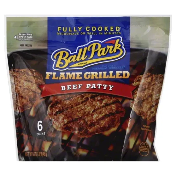 Details Ingredients BEEF, WATER, CONTAINS 2% OR LESS: ENCAPSULATED SALT, SODIUM PHOSPHATE, DEXTROSE, FLAVOR, BEEF STOCK, MALTODEXTRIN, LEMON JUICE CONCENTRATE, YEAST EXTRACT, VEGETABLE OIL, GRILL FLAVOR (FROM PARTIALLY HYDROGENATED SOYBEAN OIL), CORN SYRUP, MODIFIED FOOD STARCH. Show more Product features Beef Patty Flame Grilled Patties Nothing beats the taste of grilled meat- Except the taste of grilled meat fast! Ball Park's perfectly seasoned beef patties are flame-grilled so all you have to do is heat for hot-off-the-grill taste in minutes. It's flame-grilled fast! Beef Patty, Flame Grilled Fully cooked. Microwave or grill in minutes. Resealable zipper pack for freshness. Meat used is premium 100% beef. US inspected and passed by Department of Agriculture. No artificial flavors. No artificial colors. No by-products. No preservatives. Gluten free. Flame grilled patties. Nothing beats the taste of grilled meat - except the taste of grilled meat fast! Ball Park's perfectly seasoned beef patties are flame-grilled so all you have to do is heat for hot-off-the-grill taste in minutes. It's flame-grilled fast! For more info go to: ballparkbrand.com. Facebook. Pinterest. Twitter. Questions or Comments? Call toll-free 1-888-317-5867 or visit our website at www.ballparkbrand.com. Net Quantity of Content 6 X 77 g