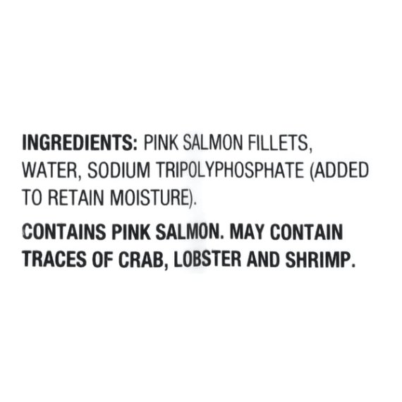 Details Ingredients PINK SALMON FILLETS, SODIUM TRIPOLYPHOSPHATE (ADDED TO RETAIN MOISTURE). Product features Great Value Frozen Wild Caught Pink Salmon Skinless Fillets are made with delicious cuts of all-natural pink salmon. They have a delicate texture and mild to medium flavor that lends itself to variety of cooking methods. Season your fillets with lime juice, chili pepper, and a dash of salt and pepper and serve with a side of refreshing coleslaw, roasted red potatoes and baked carrots for an easy to make meal that the whole family is sure to enjoy. These fillets are great for health-conscious individuals as they do not contain any saturated fat, or trans-fat as well as they are a low-calorie, lean source of protein. They come individually vacuum sealed to help maintain freshness. Enjoy the fresh-from-the-sea taste with these Great Value Frozen Wild Caught Pink Salmon Skinless Fillets. Great Value products provide families with affordable, high-quality grocery and household consumable options. With our wide range of product categories spanning grocery and household consumables, we offer you a variety of products for your family's needs. Our products are conveniently available online and in Walmart stores nationwide, allowing you to stock up and save money at the same time. Thawing Instructions: Remove fillets from vacuum wrap and place fillets into plastic bag. Place plastic bag in refrigerator until fillets are thawed. Grill Instructions: Spray or rub fish with oil. Grill fillets for approximately 3-4 minutes on each side until fish flakes when pierced. Great Value Frozen Wild Caught Pink Salmon Skinless Fillets, 16 oz: Wild caught Skinless frozen salmon fillets Individually vacuum sealed Great source of protein Certified sustainable seafood MSC Rich in Omega-3 fatty acids, great source of protein, high in B vitamins Net Quantity of Content 4 X 4 oz