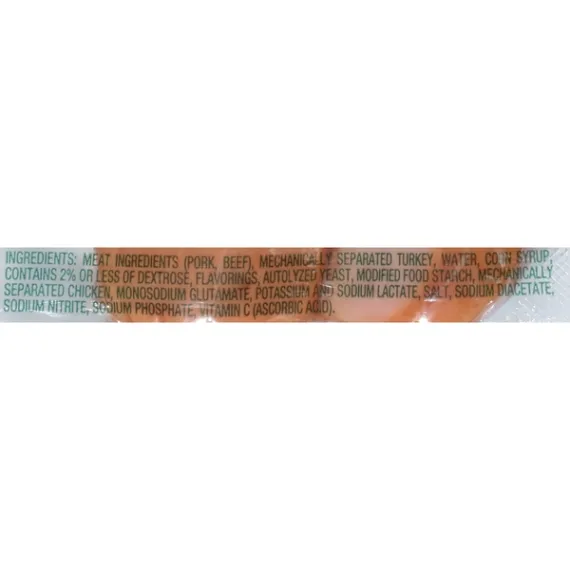 Details Ingredients MEAT INGREDIENTS (PORK, BEEF), MECHANICALLY SEPARATED TURKEY, WATER, CORN SYRUP, CONTAINS 2% OR LESS OF DEXTROSE, FLAVORINGS, AUTOLYZED YEAST, MODIFIED FOOD STARCH, MECHANICALLY SEPARATED CHICKEN, MONOSODIUM GLUTAMATE, POTASSIUM AND SODIUM LACTATE, SALT, SODIUM DIACETATE, SODIUM NITRITE, SODIUM PHOSPHATE, VITAMIN C (ASCORBIC ACID). Show more Product features Eckrich Original Smoked Sausage is the perfect addition to any occasion. Whether tailgating, throwing a party, or making a quick and easy weeknight meal, our savory spices and true smokehouse taste will please even the most discerning palates. Our delicious taste and long-standing commitment to quality, is sure to be a hit with your guests. True Smokehouse Flavor - Our smoked sausages are naturally hardwood smoked for that incomparable smokehouse flavor. Perfect for everyday meals - A top-quality, special blend of savory spices makes for an unmatched, mouth-watering flavor that is sure to be a hit. Great for Any Occasion – From weeknight meals or weekend parties, to tailgating at home or the game, or even a quick and easy snack – Eckrich Sausage is the best choice for any recipe. Tradition of Taste and Excellence - Eckrich has been producing the best quality, flavorful smoked sausage since 1894. Variety and Selection - Available in a variety of flavors for any type of recipe, sandwich, or quick appetizer you're making. Our smoked sausages are sure to be crowd pleasers. Net Quantity of Content 7 X 2 oz