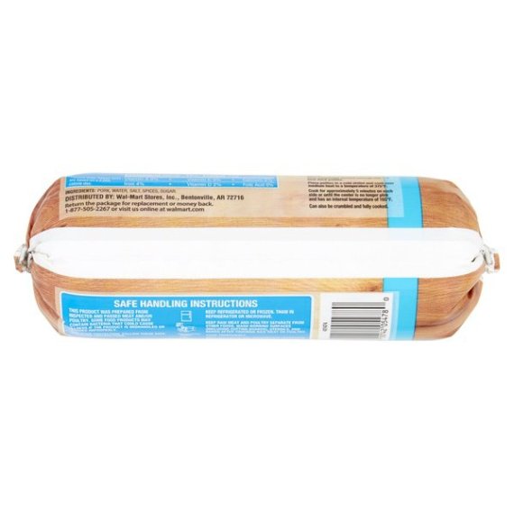 Details Ingredients PORK, WATER, SALT, SPICES, SUGAR. Product features Great Value Original Premium Sausage is perfect for your busy mornings. This premium pork sausage is a delicious complement to eggs, toast and fresh fruit. Slice this sausage into patties to pair with your favorite English muffin or bagel to make a quick breakfast sandwich with an egg and cheese. This sausage will make a tasty side dish with pancakes or French toast. Crumble it up in the skillet to make sausage gravy to go over biscuits or try it in your favorite pizza or lasagna recipes. This 16-ounce sausage roll is easy to slice into patties at the perfect thickness. Add flavor to your day with Great Value Original Premium Sausage.Great Value products provide families with affordable, high-quality grocery and household consumable options. With our wide range of product categories spanning grocery and household consumables, we offer you a variety of products for your family's needs. Our products are conveniently available online and in Walmart stores nationwide, allowing you to stock up and save money at the same time. Great Value Original Premium Sausage, 16 oz: Keep refrigerated or frozen Slice into patties Can be crumbled and cooked Great for breakfast Great Value Original Premium Sausage, 16 oz:Keep refrigerated or frozenSlice into pattiesCan be crumbled and cookedGreat for breakfast Net Quantity of Content 8 X 2 oz