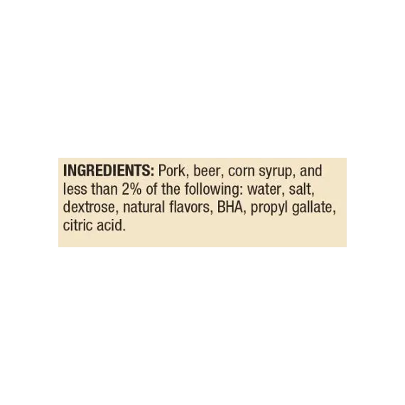 Details Ingredients PORK, WISCONSIN BEER, CORN SYRUP AND LESS THAN 2% OF THE FOLLOWING: SALT, WATER, DEXTROSE, MONOSODIUM GLUTAMATE, FLAVORINGS, BHA, PROPYL GALLATE, CITRIC ACID. Show more Product features The original “Beer Brat” that many try to imitate. Johnsonville Beer Brats are made with premium quality Wisconsin beer and only premium cuts of pork, delivering a juicy, robust flavor. Our Beer Brats have all the flavor you crave and no artificial colors or flavors, nitrates, or nitrites. Perfect for summer cookouts, Johnsonville Beer Brats easy to grill and taste great in a variety of recipes as well! Family-owned since 1945, Johnsonville began when Ralph F. and Alice Stayer opened a small butcher shop in Johnsonville, Wisconsin. Their philosophy was simple; take premium cuts of meat with quality spices to make great-tasting sausages. Today, Johnsonville is made with the same philosophy: Big Taste from a Small Town. Made with only premium cuts of pork One 19 oz. package with 5 Beer Brats Perfectly seasoned with premium quality Wisconsin beer and a unique blend of spices and herbs No artificial flavors or colors; no nitrates or nitrites; no MSG 14g of protein and no trans fat Keto-friendly high protein, low carb option Perfect for summer grilling or in a variety of recipes Special Features Rich taste Of beer Net Quantity of Content 5 X 1 grilled link