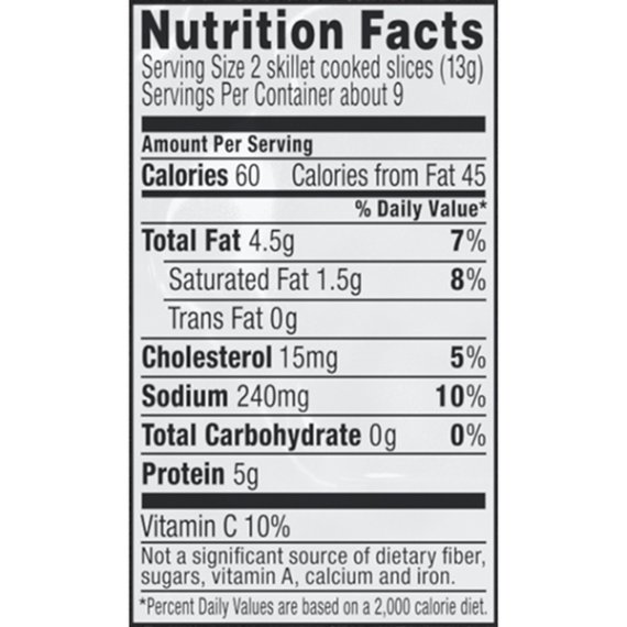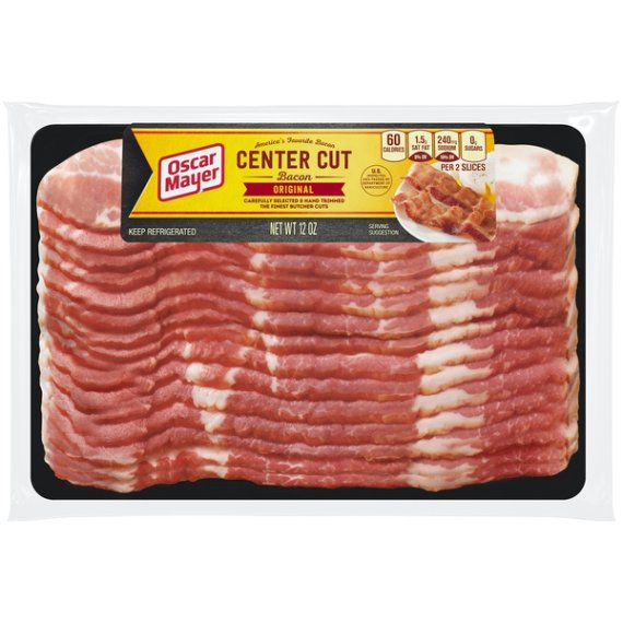 Details Ingredients Sodium Reduced Ingredient Line: Cured With Water, Salt, Sugar, Sodium Phosphates, Sodium Ascorbate, Sodium Nitrite. Product features Oscar Mayer Center Cut Bacon is quality bacon that comes from carefully selected cuts of meat. This irresistible center cut bacon is hand-trimmed and naturally smoked with real Wisconsin hardwoods. Elevate a breakfast sandwich or a classic BLT with this naturally hardwood smoked bacon. Use this pork bacon as a burger topping, or have a few bacon slices with an omelette or scrambled eggs. You can also use this package of bacon for cooking crowd-pleasing casseroles and other savory dishes that friends and family can't wait to eat. Keep this 12 ounce vacuum packed container of sliced bacon refrigerated and use within seven days once opened. One 12 oz. package of Oscar Mayer Center Cut Bacon Oscar Mayer Center Cut Bacon is a perfect and tasty slice of bacon every time Hand-trimmed from center cuts of pork Naturally smoked with real Wisconsin hardwoods for delicious flavor Use this bacon to create irresistible BLT sandwiches or breakfast platters Bacon is vacuum packed to maintain freshness Keep refrigerated below 40 degrees F and use within seven days once opened Special Features Us inspected by dept of agriculture Net Quantity of Content 9.0 X 2 skillet cooked slices (13g)