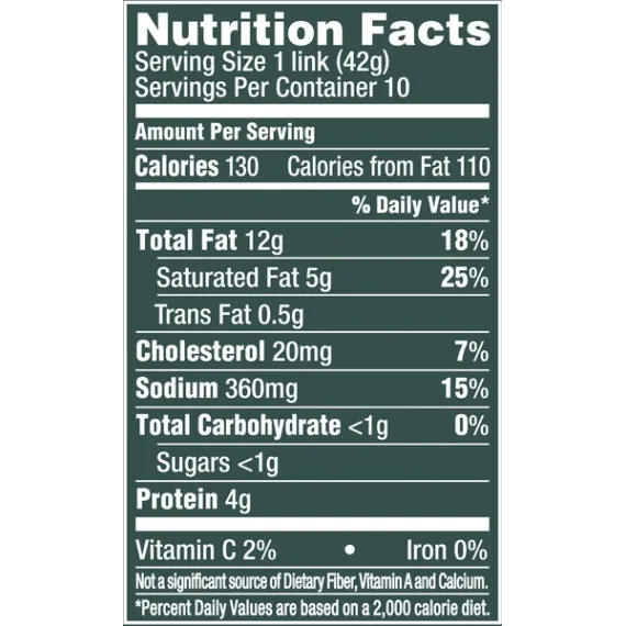 * Percent Daily Values are based on a 2,000 calorie diet. Your daily values may be higher or lower depending on your calorie needs.