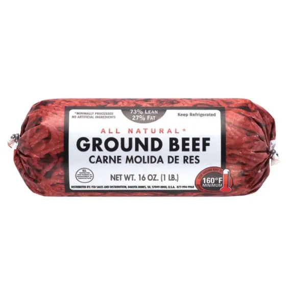 Details Ingredients Ground Beef Product features There's nothing like cooking from scratch, especially when you start with All Natural* 73/27 Lean Ground Beef. Made with quality USDA approved beef and no artificial ingredients, our all natural* ground beef is juicy, tender and flavorful. Our beef is an excellent source of protein, vitamin B6, vitamin B12, zinc, niacin, selenium and a good source of phosphorous, riboflavin, iron, and choline. All 10 essential minerals are naturally found in beef and are a flavorful way to give your body nutrients to help power through the day. Great for sautéing or grilling, simply cook and serve with asparagus, bow tie pasta and pesto sauce for a hearty weeknight dinner. Ground Beef should be cooked to a safe internal temperature of 160°F. Includes one package. *Minimally processed, no artificial ingredients. One package of 73/27 Lean Ground BeefExcellent source of protein, vitamin B6, vitamin B12, zinc, niacin, selenium and a good source of phosphorous, riboflavin, iron, and cholineUSDA approvedAll natural, minimally processed beef with no artificial ingredientsDelicious addition to your favorite recipes Special Features No artificial Ingredients Net Quantity of Content 4 X 4 oz