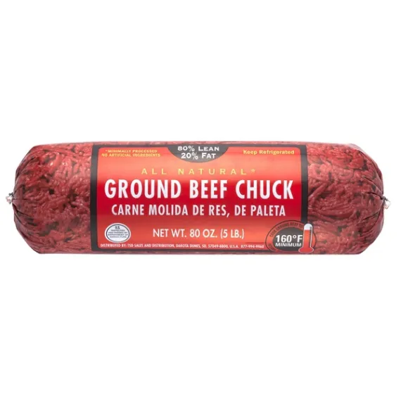 80% Lean/20% Fat, Ground Beef Chuck Roll, 5 lb
