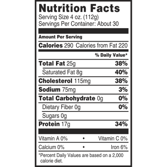 *  Percent Daily Values are based on a 2,000 calorie diet. Your daily values may be higher or lower depending on your calorie needs.