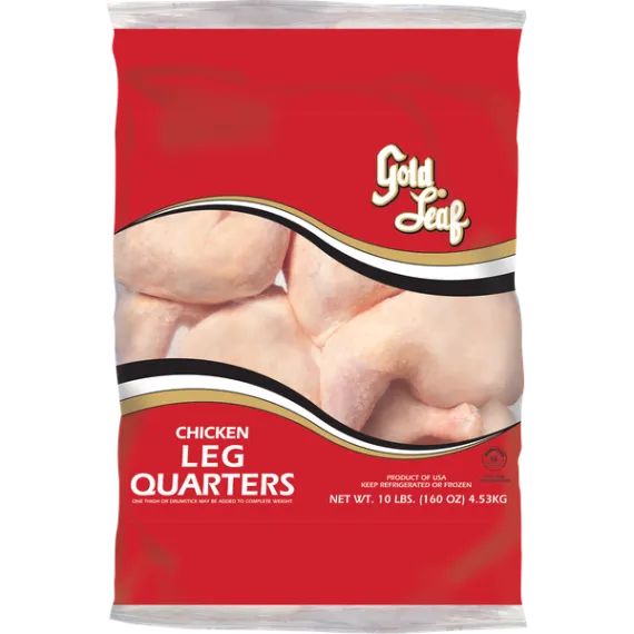 Details Ingredients CHICKEN LEG QUARTERS. Product features There's nothing like cooking from scratch, especially when you start with Gold Leaf® Chicken Leg Quarters. Our chicken is juicy and tender with 17 grams of protein per serving. Perfect for grilling and frying, simply cook and serve our chicken leg quarters with BBQ sauce for a quick and delicious weeknight dinner. Includes one 10 lb. package. One thigh or drumstick may be added to complete weight. One package of Gold Leaf¨ Fresh Chicken Leg Quarters, 10 lb. 17 grams of protein per serving Contains about 30 servings per container Perfect for grilling and frying One thigh or drumstick may be added to complete weight Product of the USA Net Quantity of Content ABOUT 30 X 4 oz