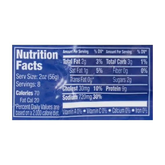 Details Ingredients CURED WITH: WATER, DEXTROSE, SALT, MODIFIED FOOD STARCH, POTASSIUM LACTATE, SODIUM PHOSPHATES, SODIUM DIACETATE, SODIUM ERYTHORBATE, SODIUM NITRITE. Show more Product features Farmland Ham takes flavor to a whole new level. Our tasty ham is 95% fat free and gluten free for healthier ham you can feel good about eating. Add a protein packed option to your breakfast, lunch or dinner or enjoy an afternoon snack. You can indulge in Farmland Ham any time of the day! READY TO EAT At Farmland, we work side by side with American farm families, hand trim our cuts and fully cook our ham so it can be eaten cold or mixed into your favorite recipe and served warm. HEALTHIER HAM Farmland ham is gluten-free and is 95% fat free, providing you with a healthier, tastier ham that your whole family will enjoy. Breakfast, lunch or dinner . . . Enjoy delicious ham anytime! PERFECT FOR ANY TIME Whether you are preparing a tasty breakfast, creating a new appetizer, topping a sandwich, or just wanting a quick snack, Farmland ham is the perfect choice for a mouth-watering morsel anytime. PROTEIN POWER Ham is a great source of energy-boosting protein. Forget dark chocolate, jerky and candied sweets, ham is the perfect snack. Not only is it a flavorful treat, it will keep you satisfied to help get you through the day. PASSION FOR PORK At Farmland, we do things a certain way. We don’t cut corners. We don’t take the easy way out. And we never take chances when flavor is on the line. We’ve been bringing great-tasting food to people’s tables since 1959. Special Features 95% fat free Net Quantity of Content 8 X 2 oz