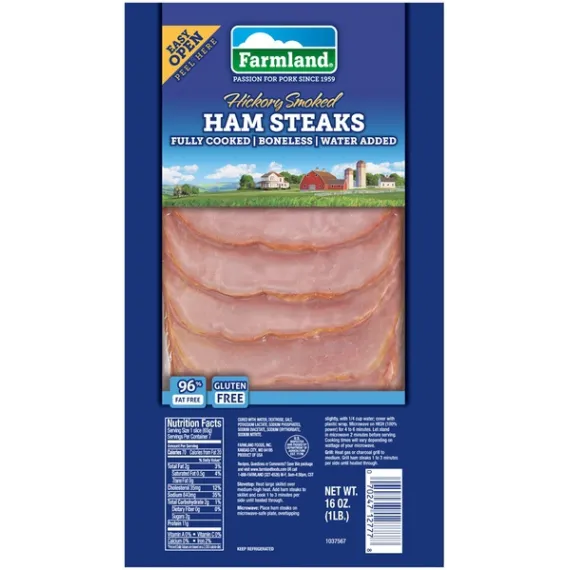 Farmland Hickory Smoked Ham Steaks, 96% Fat Free, Gluten Free, Fully Cooked, Boneless, 16 Ounces