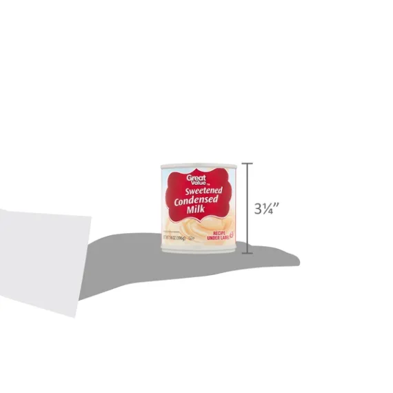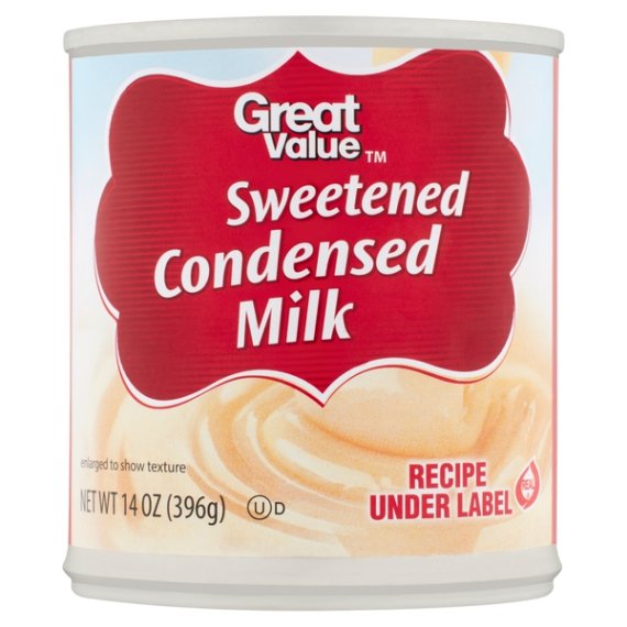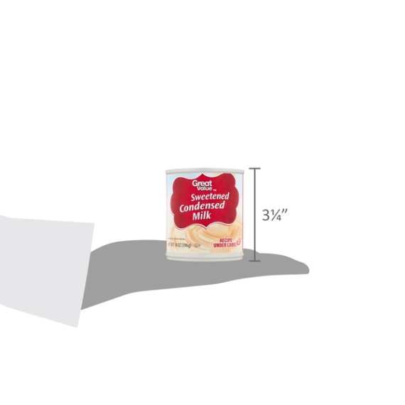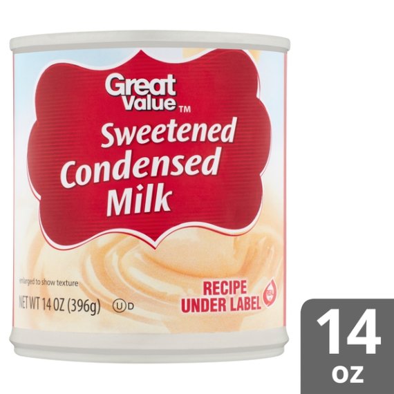 Details Ingredients MILK, SUGAR. Product features Great Value Sweetened Condensed Milk is a handy ingredient to have for making a wide variety of desserts. The sweet and rich milk is created by reducing milk down to remove water content while adding sugar. The result is a shelf-stable ingredient that can be used in multiple ways, making it an ideal pantry staple for the home cook. Use in tea or coffee for an extra flavorful beverage with minimal effort. Add to mixes for cookies and cakes, or use simply to top ice cream and pies. Drizzle over a bowl of fresh fruit for a lighter dessert. Include the sweetened condensed milk into curries for a spin on the classic coconut milk base. Add to pudding mix for more sweetness. Try making your own ice cream at home by using this condensed milk with fruit. The cooking possibilities are numerous with Great Value Sweetened Condensed Milk. Great Value products provide families with affordable, high quality grocery and household consumable options. With our wide range of product categories spanning grocery and household consumables, we offer you a variety of products for your family's needs. Our products are conveniently available online and in Walmart stores nationwide, allowing you to stock up and save money at the same time. Contains milk and sugar 14oz per can Do not heat in the can Kosher Special Features Real Net Quantity of Content ABOUT 10 X 2 Tbsp