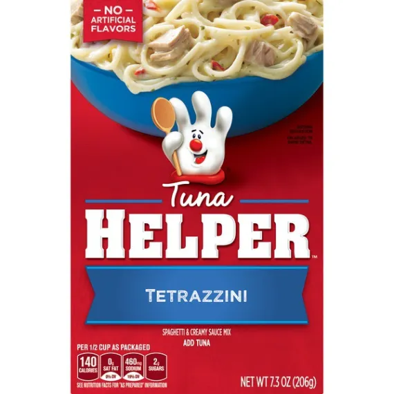 Details Ingredients Enriched Spaghetti (Wheat Flour, Niacin, Ferrous Sulfate, Thiamin Mononitrate, Riboflavin, Folic Acid), Corn Starch, Salt, Sugar, Sunflower Oil, Buttermilk, Parmesan Cheese* (Milk, Cheese Cultures, Salt, Enzymes), Monosodium Glutamate, Maltodextrin, Red Bell Peppers*, Yeast Extract, Vegetable Oil (Canola, Soybean and/or Sunflower Oil), Natural Flavor, Citric Acid, Parsley*, Monoglycerides, Spice, Sodium Phosphate, Cream, Silicon Dioxide (Anticaking Agent), Color (Yellow 5 Lake, Yellow 5).*Dried. Show more Product features Our products are made with NO artificial flavors or colors from artificial sources. Add Your Own Twist! Make it fancy! Stir in cooked peas just before serving. Top with shoestring potatoes. Pasta skillet-meal mix of pasta and seasoning Made with real herbs & spices No artificial flavors or colors from artificial sources Just add tuna Stock your pantry with an easy and delicious meal option for everyone Meal Kit, Dry Dinner Kit, One Skillet Meal, Helpers, Tuna Helper, Packaged Meal Special Features Add tuna Net Quantity of Content 5 X 1.0