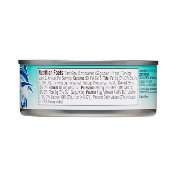 Details Ingredients Light tuna, water, vegetable broth, salt Product features Great Value brings you premium wild caught, chunk light tuna, soaked in water and vegetable broth for flavor. This tuna is perfect for dozens of quick and easy meals at home. Add thinly sliced celery and onion and mix well with mayonnaise, lemon juice, salt and pepper for a delicious homemade tuna salad. Serve it with a side of roasted vegetables as a tasty low calorie meal. Top it on toast with creamy avocado for a mouthwatering snack. It offers nutritional benefits as itâs an excellent source of protein. It comes can sealed, keeping it fresh without the need of refrigeration. Great Value products provide families with affordable, high quality grocery and household consumable options. With our wide range of product categories spanning grocery and household consumables, we offer you a variety of products for your familyâs needs. Our products are conveniently available online and in Walmart stores nationwide, allowing you to stock up and save money at the same time. Great Value Chunk Light Tuna, in Water: Premium wild caught tuna 100 calories per serving 24 grams of protein per serving Great for you Net weight 5 oz Special Features 50 calories per serving Net Quantity of Content 1 X 1 Can drained (113g)