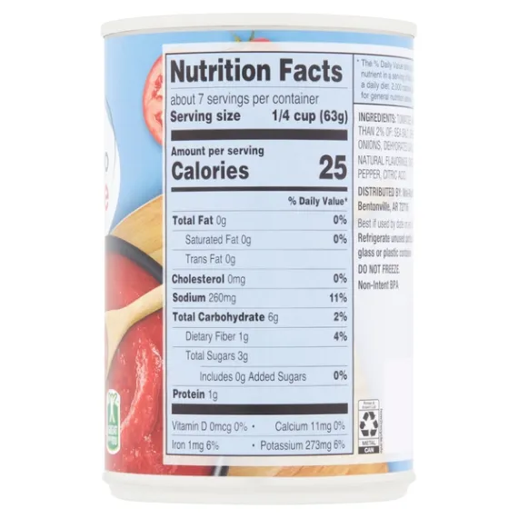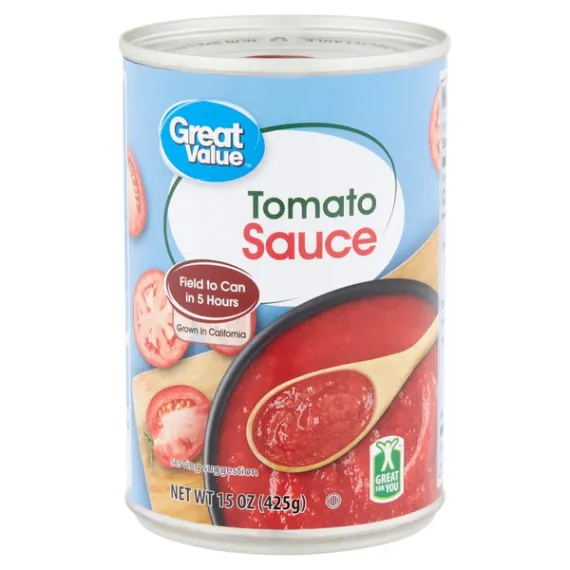 Details Ingredients TOMATO CONCENTRATE (TOMATO PASTE, WATER), SALT, DEHYDRATED ONIONS, DEHYDRATED GARLIC, SPICES, NATURAL FLAVORINGS, SWEET BELL PEPPER. Show more Product features Great Value Canned Tomatoes Grown by Family Farmers Our story starts in California's Central Valley, where local family farmers work diligently to bring the wholesome goodness of Great Value canned tomatoes to your home. Ripe tomatoes are picked and canned at the peak of freshness within 5 hours to preserve freshness and flavor. Great Value canned tomatoes are available in many different varieties and styles. We hope you enjoy this eating experience with your families for years to come! Upgrade mealtime, anytime with Great Value Tomato Sauce. To create this hearty sauce, California farmers pick field-grown tomatoes at the peak of freshness and can them within 5 hours of harvest to preserve their freshness and flavor. Elevate your pasta marinara, create an aromatic chutney, or upgrade a grilled cheese with a thin layer of this sauce spread across crusty baked bread. The culinary possibilities are virtually endless when you have a can of Great Value Tomato Sauce in your pantry. Great Value products provide families with affordable, high quality grocery and household consumable options. With our wide range of product categories spanning grocery and household consumables, we offer you a variety of products for your family's needs. Our products are conveniently available online and in Walmart stores nationwide, allowing you to stock up and save money at the same time. Field to can in 5 hours Grown in California Non-intent BPA Gluten-free Non BPA can liner Grown in the USA Kosher Special Features Recyclable Container Net Quantity of Content ABOUT 7 X 0.25 cup