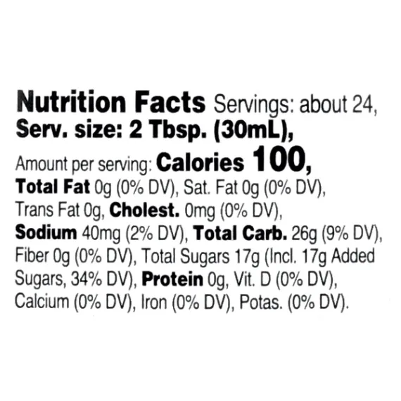 Details Ingredients Corn syrup, high fructose corn syrup, water, contains less than 2% of natural and artificial flavors, cellulose gum, salt, caramel color, sodium benzoate and sorbic acid (preservative), sodium hexametaphosphate. Show more Product features Great Value Original Syrup is the perfect way to top your favorite pancakes and waffles. This original syrup from Great Value is sweet, smooth and utterly delicious. The deliciously sweet taste makes every breakfast moment enjoyable. Add it to your food and dessert recipes to add some sweetness. Give your breakfast a sweet kick by adding this Great Value Original Syrup. Great Value products provide families with affordable, high quality grocery and household consumable options. With our wide range of product categories spanning grocery and household consumables, we offer you a variety of products for your family's needs. Our products are conveniently available online and in Walmart stores nationwide, allowing you to stock up and save money at the same time. Great Value Original Syrup: Great for pancakes and waffles Sweet, smooth and utterly delicious Can be added to other food recipes and desserts to add some sweetness Perfect accompaniment to your daily breakfast Net Quantity of Content 24 X 2 Tbsp. (30mL)
