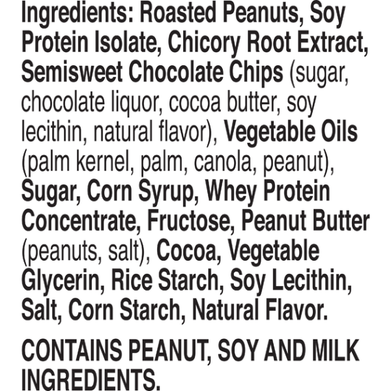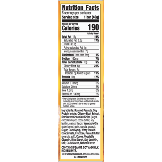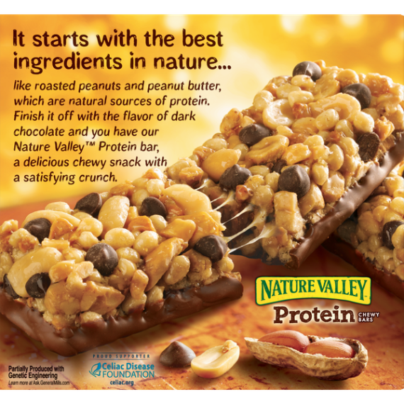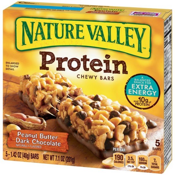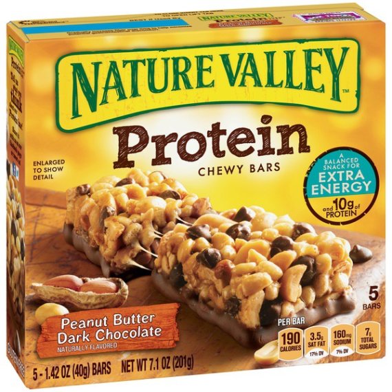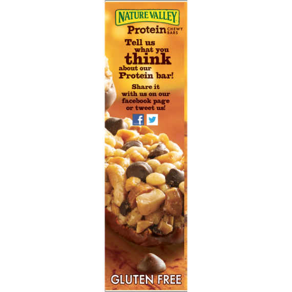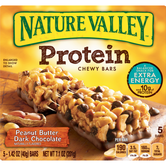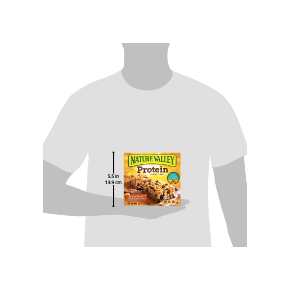 Details Ingredients Roasted Peanuts, Soy Protein Isolate, Chicory Root Extract, Semisweet Chocolate Chips (Sugar, Chocolate Liquor, Cocoa Butter, Soy Lecithin, Natural Flavor), Vegetable Oils (Palm Kernel, Palm, Canola, Peanut), Sugar, Corn Syrup, Whey Protein Concentrate, Fructose, Peanut Butter (Peanuts, Salt), Cocoa, Vegetable Glycerin, Rice Starch, Soy Lecithin, Salt, Corn Starch, Natural Flavor. Show more Product features Nature Valley Protein Peanut Butter Dark Chocolate Chewy bars contain 10g of protein power! They are gluten free and made with rich, dark chocolate chips, roasted peanuts and creamy peanut butter. It's a delicious, protein-packed snack the whole family can enjoy! REAL INGREDIENTS: Granola bars are made with roasted peanuts, semisweet chocolate chips and creamy peanut butter PROTEIN SNACK BAR: A quick and natural energy boost and a good source of protein SWEET & CHEWY: Filled with nuts and flavored with rich dark chocolate for a delicious chewy snack with a satisfying crunch PERFECTLY PORTABLE: Easy, wholesome bites for breakfast, snack time or an on-the-go invigorating treat Box Contains: 5 Individual Bars, 1.4 Oz Each special k bars, kelloggs chewy bar, quaker chocolate chip bars, trail mix, fruit bar, fruit and nut bar, healthy bars, mixed nut bars, quaker chewy granola bars, granola bars, kind bars, pressed by kind, chewy granola bars, quaker granola bars, chocolate granola bars, protein granola bars, dark chocolate granolabars, chewy bars, grocery, healthy granola bars, breakfast bars, kind breakfast bars, kashi granola bars, natural, energy bar, nutrition bars, organic snacks, healthy snacks, kind protein bars, snack bars, gluten free bars, natural granola bar, health bars, whole grain bar, whole grain granola bar, kind fruit and nut, strong and kind, bars, natures valley, sweet and salty, protein bars, breakfast bars, nature valley granola bar, quest cereal protein bars, bar granola, thats it fruit bars, quest protein bars, fruit bars, bulk granola bars, cereal bars, kind breakfast bars, granola bars kids Net Quantity of Content 5 X 1 bar (40g)