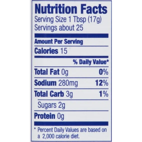 Details Ingredients Ingredients: Tomato Puree (Water, Tomato Paste), Vinegar, Corn Syrup, Salt, Raisin Paste, Crushed Orange Puree, Spice, Dried Garlic, Caramel Color, Dried Onions, Potassium Sorbate (To Preserve Freshness), Xanthan Gum, Celery Seed Show more Product features A.1. Original Steak Sauce delivers the classic A.1. flavor you love to enhance your family's favorite dishes. This delicious sauce combines tomatoes, garlic, crushed oranges and an intricate mix of spices for a zesty flavor you can't resist. Add this multi purpose sauce to steak, chicken, beef or pork, or use it as a dipping sauce. Brush this bottled steak sauce on chicken wings for extra flavor, add it to pot roast for a bold kick or dress up pork chops for a delicious dinner. Each 15 ounce bottle is resealable to help lock in flavor. From steak sauce to marinades and meat rubs, A.1. adds delicious flavor to all your family favorites. One 15 Ounce. bottle of A.1. Original Steak Sauce A.1. Original Steak Sauce delivers bold flavor to your favorite dishes Made with a mouthwatering blend of tomatoes, garlic, crushed oranges and an intricate mix of spices Classic sauce pairs well with steak, chicken, beef or pork Pour sauce over meat, or use as a dipping sauce Special Features Cajun prime rib recipe Net Quantity of Content 25.0 X 1 Tbsp (17g)