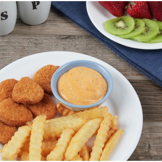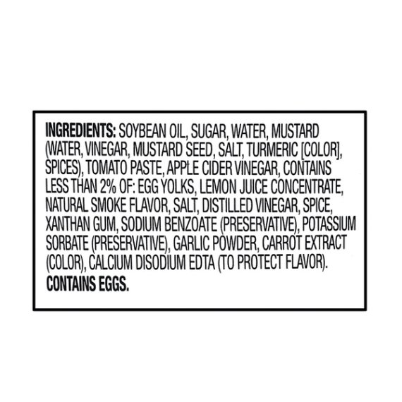 Details Ingredients Soybean Oil, Sugar, Water, Mustard (Water, Vinegar, Mustard Seed, Salt, Turmeric, Spices), Tomato Paste, Contains Less than 2% of Egg Yolks, Apple Cider Vinegar, Lemon Juice Concentrate, Natural Smoke Flavor, Salt, Distilled Vinegar, Spice, Xanthan Gum, Sodium Benzoate (Preservative), Potassium Sorbate (Preservative), Dried Garlic, Carrot Extract (Color), Calcium Disodium EDTA (To Protect Flavor). Show more Product features Great Value Restaurant Style Chicken dipping Sauce is made with a rich honey mustard sauce and a hint of BBQ smoke flavor. This delicious dipping sauce is perfect for dipping your chicken tenders, chicken nuggets, fries and more. Great Value Restaurant Style Chicken dipping Sauce will be a great addition to your next picnic or barbecue. Great Value products provide families with affordable, high quality grocery and household consumable options. With our wide range of product categories spanning grocery and household consumables, we offer you a variety of products for your family's needs. Our products are conveniently available online and in Walmart stores nationwide, allowing you to stock up and save money at the same time. Great Value Restaurant Style Chicken Dipping Sauce, 12 fl oz: Chicken dipping sauce Great for nuggets, tenders, fries and more Net weight 12 fl oz Net Quantity of Content ABOUT 12 X 2 Tbsp