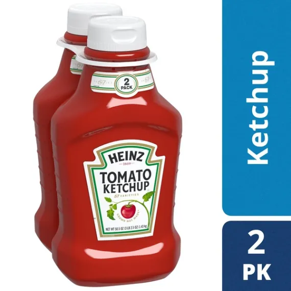 Details Ingredients Tomato Concentrate From Red Ripe Tomatoes, Distilled Vinegar, High Fructose Corn Syrup, Corn Syrup, Salt, Spice, Onion Powder, Natural Flavoring. Show more Product features Heinz Tomato Ketchup is made only from sweet, juicy, red ripe tomatoes for the signature thick and rich taste of Americas Favorite Ketchup. Only the best tomatoes for the best ketchup. Did you know that every tomato in every bottle of Heinz Ketchup is grown from Heinz seeds? Grown not made... One reason why no other ketchup taste like Heinz Ketchup! The thick texture makes this bottled ketchup perfect for spreading or dipping, and it's gluten free and great for those keeping Kosher to fit your preferences. Reach for this Kosher ketchup at every cookout to top your favorite burgers, hot dogs and sandwiches. Packed in two 50.5 ounce squeezable ketchup bottles for easy sharing, this condiment is your go-to option for gatherings and everyday meals. Two 50.5 Ounce. bottles of Heinz Tomato Ketchup Heinz Tomato Ketchup uses sweet, juicy, ripe tomatoes grown from Heinz seeds for signature taste Rich ketchup made from the best tomatoes This tomato ketchup has a thick texture Contains gluten free ketchup to fit your preferences Special Features Twin pack Net Quantity of Content 84.0 X 1 Tbsp (17g)