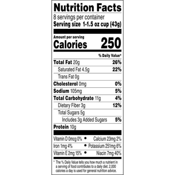 Details Ingredients Made From Peanuts, Sugar, Palm Oil, Contains 2% Or Less Of: Salt, Molasses. Product features The delicious taste of Jif Natural Peanut Butter Spread in a convenient, right-sized cup. Perfect for dipping your favorite snacks! 9g protein per serving On the Go Snack No Refrigeration Necessary Net Quantity of Content 8.0 X 43 g