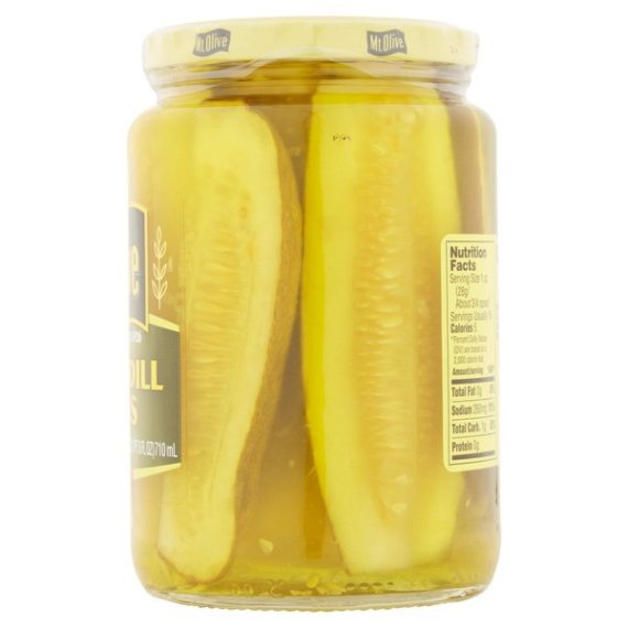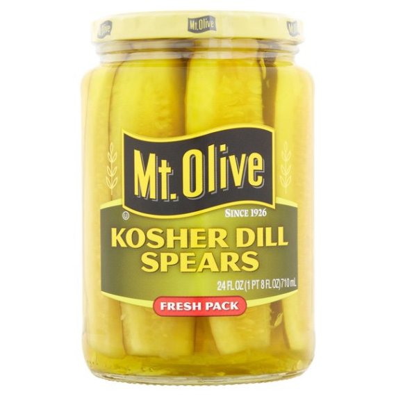 Details Ingredients CUCUMBERS, WATER, VINEGAR, SALT, CALCIUM CHLORIDE, 0.1% SODIUM BENZOATE (PRESERVATIVE), NATURAL FLAVORS, POLYSORBATE 80, AND YELLOW 5. Show more Product features FRESH KOSHER DILL STRIPS Pickles, Kosher Dill, Spears, Fresh Pack Since 1926. Visit MtOlivePickles.com. Special Features Spears Net Quantity of Content USUALLY 16 X 1 oz
