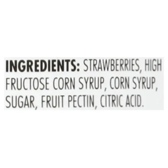 Details Ingredients Strawberries, High Fructose Corn Syrup, Corn Syrup, Sugar, Fruit Pectin, Citric Acid. Product features Families have loved our Strawberry Jam for more than 100 years, and for good reason. With just the right balance of fruit and sweetness, we use ripe berries and let the natural flavors intensify in the making. Add Smucker’s Strawberry Jam to balsamic vinaigrettes, pair with dark chocolate, or go classic and make a tasty PB & J. Easy to spread Balance of fruit and sweetness Perfect for a tasty PB&J Net Quantity of Content 45.0 X 1 Tbsp