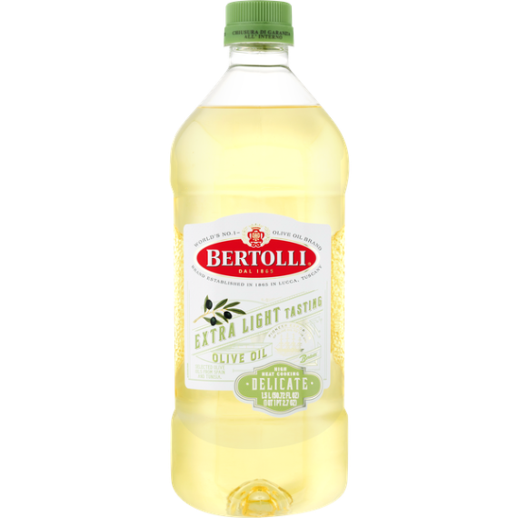 Details Ingredients Olive Oil - Composed of refined Olive Oil and Virgin Olive Oil Product features Enhance the flavor of your favorite recipes with the 51 oz bottle of Bertolli Oil Delicate and Mild Extra-Light Olive Oil. This product is just the right substitute for butter, shortening and other vegetable oils. It is suited for those seeking the healthy benefits of olive oil with a hint-of-olive taste. Because this product has a very high smoke point of 468 degrees Fahrenheit, it is well-suited for high-heat cooking styles, such as frying, sauteing and even baking. You can use Bertolli Olive Oil to make incredibly moist and smooth cakes, brownies, breads, muffins and other oven-prepared goods. Since 1865, this brand has been imported from Italy, which means it is a product with tradition and quality. Bertolli Oil Extra Light Delicate & Mild Olive Oil, 51 oz: Delicate and mild olive oil Super value size Imported from Italy since 1865 Bertolli Olive Oil is a healthy substitute for shortening, butter and other types of vegetable oils High smoke point at 468F Suited for high-heat cooking, like sauteing, frying and baking Can also be used to add smoothness and moisture to brownies, cakes, muffins and breads Non-GMO Project verified Olives are not produced using biotechnology All the goodness of olive oil with just a hint of olive flavor Special Features Extra light Net Quantity of Content 102 X 15 mL