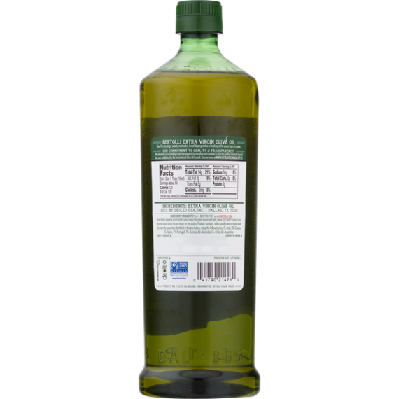 Details Ingredients Extra Virgin Olive Oil Product features Extra Virgin Olive Oil Bertolli Extra Virgin olive oil has a full-bodied flavor for those who desire the highest quality olive oil and appreciate the rich taste and aroma of olives. It is ideal for dressings, salads, marinades, bread dipping and as a finishing oil for every type of cuisine. Product Features First cold pressing Rich taste Best for dressings, marinades, dips Kosher Packing - Recyclable PETE - 1 BertolliOliveOil.com Special Features Rich taste Net Quantity of Content 50 X 15 mL