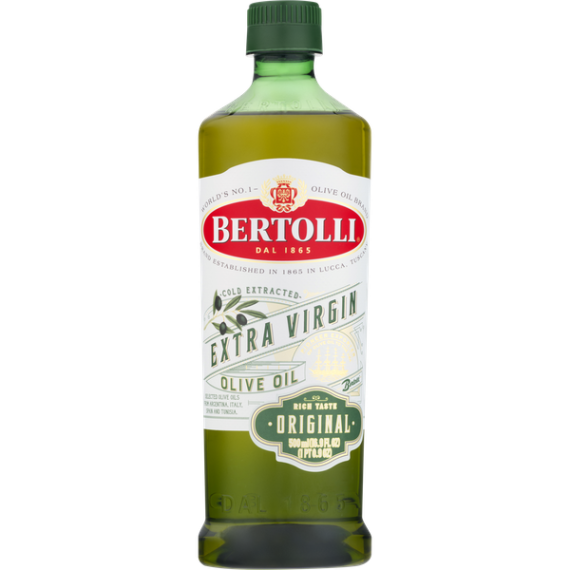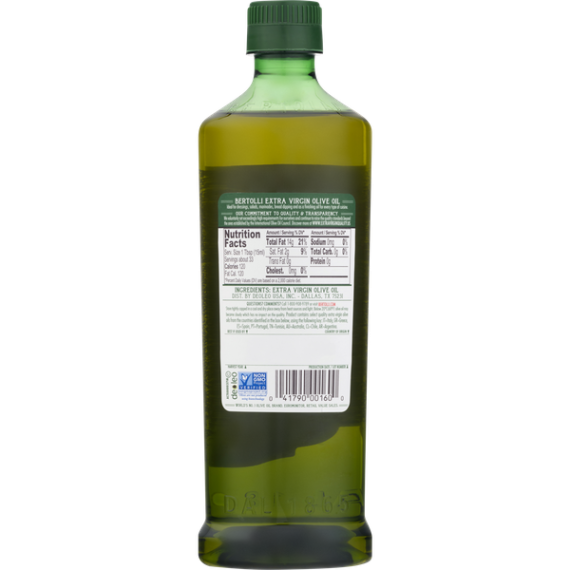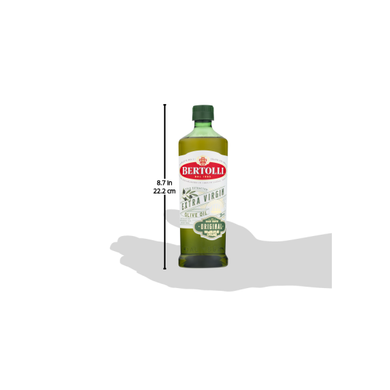 Details Ingredients Extra Virgin Olive Oil. Product features Bertolli Extra-Virgin Olive Oil, Original, 16.9 fl oz: Premium Ingredients. Authentic Taste. 150 Years in the Making. Bertolli Olive Oil is a useful addition to your kitchen pantry. It adds a smooth and rich flavor to virtually any dish, from Italian, Greek and other types of cuisine. This original olive oil is cold-pressed to preserve the integrity of its flavor and is never exposed to heat. It's ideal for creating dressings, marinades, dips and much more. This oil is free of cholesterol, trans fat and sodium. Best Friends. Big Laughs. Simple Ingredients. The Best Times Pair with the Best Olive Oil. When living well means eating well, Bertolli has just the right olive oil for every recipe, gathering, and occasion. We believe that simple meals aren’t only delicious; they’re easy to make your own. When you’re cooking with Bertolli, there’s no right or wrong way. Ready, prep, go! What's For Dinner? Whether you're whisking together your favorite salad dressing or creating a new Italian recipe, you can trust Bertolli Olive Oil to infuse the quality flavor you love. When it comes to authentic cooking, it’s the simple things that make all the difference. Why Bertolli Extra-Virgin Olive Oil? Extra-virgin olive oil Cold-pressed, never heated Rich olive flavor Ideal for dressings, marinades and dips Non-GMO 120 calories per serving No trans fat Free of cholesterol and sodium OLIVE OIL HEALTH BENEFITS Fats are a vital part of any diet. From supporting the absorption of vitamins to keeping your brain functioning well, you need fats to stay healthy. But not all fats are created equal and you need more of certain fats than others. A key component of olive oil is monounsaturated fats, mainly oleic acid. Limited and not conclusive scientific evidence suggests that eating about 2 tablespoons (23 grams) of olive oil daily may reduce the risk of coronary heart disease due to the monounsaturated fat in olive oil. To achieve this possible benefit, olive oil should replace a similar amount of saturated fat and not increase the total number of calories you eat in a day. Special Features Rich taste Net Quantity of Content 34 X 15.00 ml