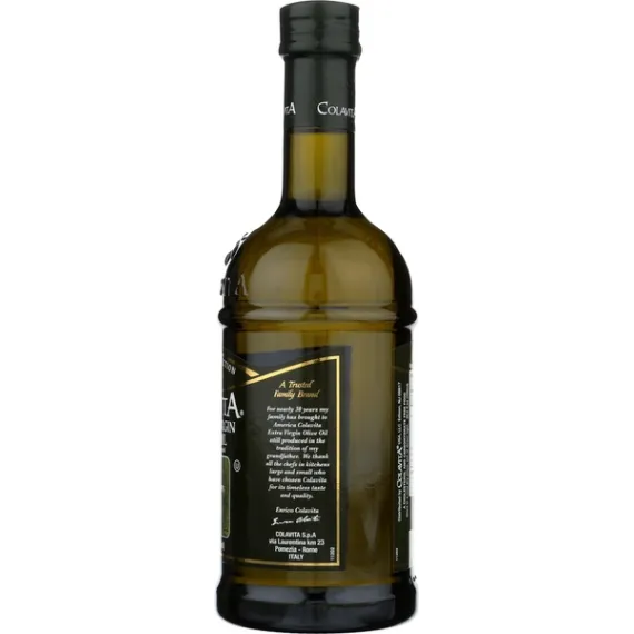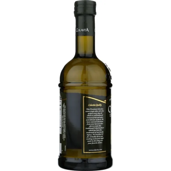 Details Ingredients Cold production obtained exclusively from olives harvested from the finest groves in Europe Product features Colavita Extra Virgin Olive Oil is the perfect everyday oil with a delicate flavor that has the perfect balance of fruity and spicy notes. We have sourced selections from new harvest oils to create this traditional Colavita flavor, which has been the trademark of the Colavita family legacy. It is an ideal oil for virtually all of your cooking needs, from light sauteing to drizzling over your favorite dishes. During the colder months, olive oil will congeal during shipping. This is normal, natural, and will not disturb the quality of the oil. Please allow congealed oil to rest at room temperature for 24 hours. Imported from Italy. Contains oil from one or more of the following countries: Italy, Greece, Spain or Portugal. This product bares The North American Olive Oil Association (NAOOA) Quality Seal and has been tested for both quality and authenticity according to the International Olive Council (IOC) standards. Colavita Premium Selection Extra Virgin Olive Oil, 25.5 Fl oz: First cold pressed Delicate flavor that has the perfect balance of fruity and spicy notes Perfect for roasting baking dressing and marinades. Extra virgin olive oil NAOOA certified Cholesterol and Carbohydrate Free Certified OU Kosher Imported from Italy Special Features Cholesterol free Net Quantity of Content 50 X 1 Tbsp