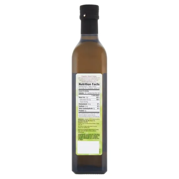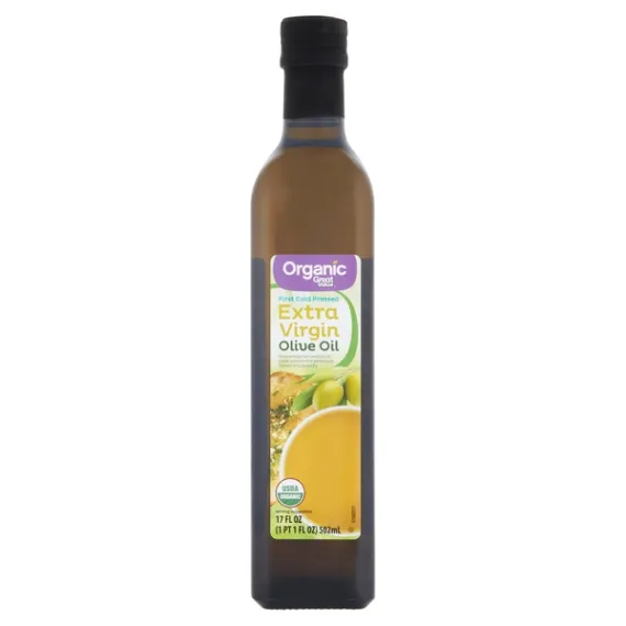Details Ingredients ORGANIC EXTRA VIRGIN OLIVE OIL. Product features No kitchen is complete without Great Value Organic Extra Virgin Olive Oil on hand. Our olive oil is processed using a first cold-pressed method, meaning our olives were crushed and pressed only once. This method creates a product of the highest quality and purity. Our mission is to deliver great foods you can trust, so we only use wholesome ingredients that have no artificial flavors or preservatives. Use this olive oil to create a delightful marinade or homemade dressing you and your family will love. Complete your pantry with Great Value Organic Extra Virgin Olive Oil. Organic Great Value uses only wholesome ingredients with no artificial flavors or preservatives to deliver great foods you can trust. Honest taste. Great value. Great Value Organic offers a wide-range of USDA certified organic foods that are hand-selected to meet our high standards as well as yours. We use wholesome ingredients without artificial flavors or preservatives to deliver great food you can trust at an affordable price. Fill your table with organic foods your family deserves without draining your budget. Extra virgin olive oil First cold pressed USDA organic No artificial flavors or preservatives 17fl oz Net Quantity of Content ABOUT 33 X 1 Tbsp