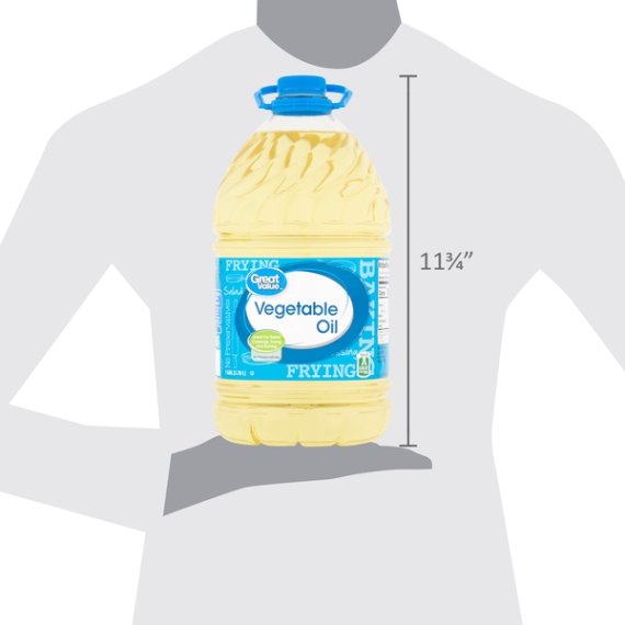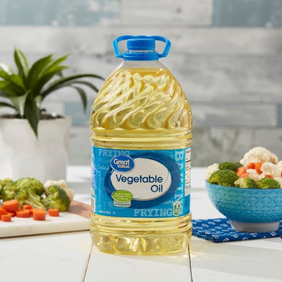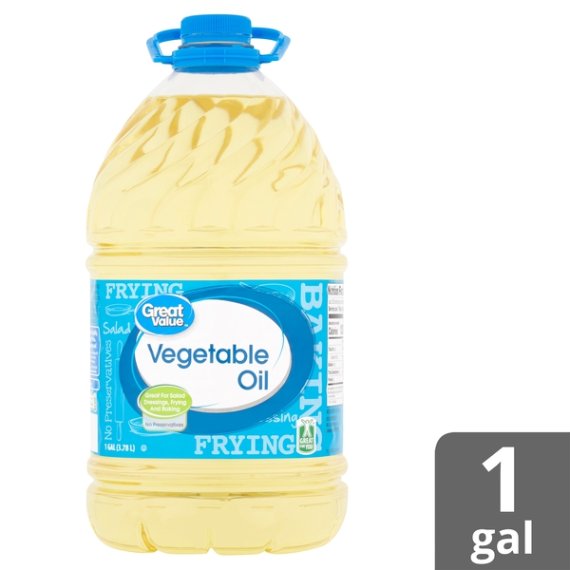 Details Ingredients SOYBEAN OIL. Product features Great Value Vegetable Oil is the perfect choice for all of your cooking needs. The 1-gallon bottle contains 256 servings with only 120 calories and 2 grams of saturated fat per serving and is only a fraction of the cost of name brand vegetable oils. This versatile cooking oil contains only soybean oil with no preservatives. Oil made from soybeans is rich in fatty acids, antioxidants, and essential vitamins and minerals. It is also gluten free and Kosher certified. With a higher smoke point than other oils, vegetable oil is great for frying and baking. You can also use this oil as a blank canvas for yummy salad dressings made fresh in your kitchen! Regardless of what you're cooking, you can be certain you're making a healthy choice when you use Great Value Vegetable Oil. Great Value products provide families with affordable, high quality grocery and household consumable options. With our wide range of product categories spanning grocery and household consumables, we offer you a variety of products for your family's needs. Our products are conveniently available online and in Walmart stores nationwide, allowing you to stock up and save money at the same time. 1 gallon bottle Great for frying, baking, and making salad dressings No preservatives Kosher certified Gluten free Special Features 100% pure Net Quantity of Content ABOUT 256 X 1 Tbsp