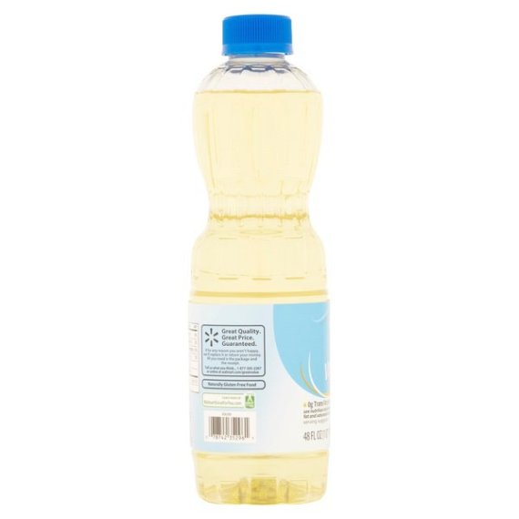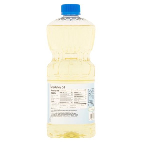 Details Ingredients SOYBEAN OIL. Product features Great Value Vegetable Oil is the perfect choice for all of your cooking needs. The 48-ounce bottle contains 96 servings with only 120 calories and 2 grams of saturated fat per serving. Plus, the value size bottle is only a fraction of the cost of name brand vegetable oils. This versatile cooking oil contains only soybean oil with no preservatives. It is also gluten free and Kosher certified. With a higher smoke point than other oils, vegetable oil is great for frying and baking. You can also use this oil as a blank canvas for yummy salad dressings. Oil made from soybeans is rich in fatty acids, antioxidants, and essential vitamins and minerals. Regardless of what you're cooking, you can be certain you're making a healthy choice when you use Great Value Vegetable Oil. Great Value products provide families with affordable, high quality grocery and household consumable options. With our wide range of product categories spanning grocery and household consumables, we offer you a variety of products for your family's needs. Our products are conveniently available online and in Walmart stores nationwide, allowing you to stock up and save money at the same time. 48floz bottle Great for frying, baking, and making salad dressings No preservatives Kosher certified Gluten free Special Features 100% pure Net Quantity of Content ABOUT 96 X 1 Tbsp