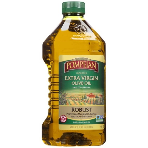 Details Ingredients Product Contains Select High-Quality Olive Oil From Spain, Italy, Tunisia, Greece And Argentina. Product features Pick up this Pompeian Robust Extra Virgin Olive Oil to open up a world of culinary possibilities for your next family meal or social occasion. Pompeian works directly with farmers, which ensures that only the finest olives are selected and allows for full traceability of its products. This gluten-free olive oil is extremely low in acidity (less than 0.5 percent) and has a full-bodied taste that is excellent for marinades, pastas and salad dressings. It is also ideal for sauteing, sauces and stir-frying. This olive oil is also handy when grilling to baste food for flavor or the grill itself to prevent sticking. Plus, it is the first olive oil to attain the USDA Quality Monitored seal, which verifies that it meets the rigorous quality, purity and traceability requirements of the USDA. This naturally gluten-free and non-allergenic product offers a delicious way to enjoy heart-healthy Mediterranean cooking. It will make an ideal addition to almost any home or commercial kitchen. Pompeian Robust Extra Virgin Olive Oil: First cold press Perfect for marinades, pastas and salad dressings Acidity less than 0.5% Imported Non-allergenic North American Olive Oil Association certified quality Pompeian olive oil 68 fl oz plastic bottle Special Features Robust flavor Net Quantity of Content 136 X 1 Tbsp