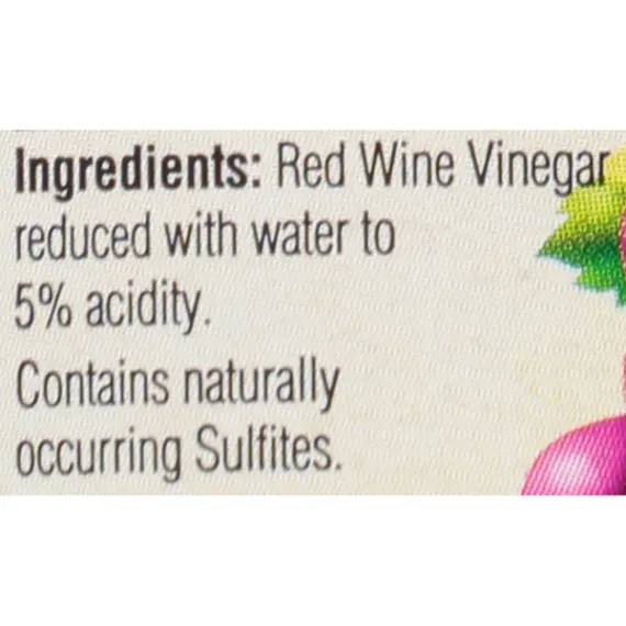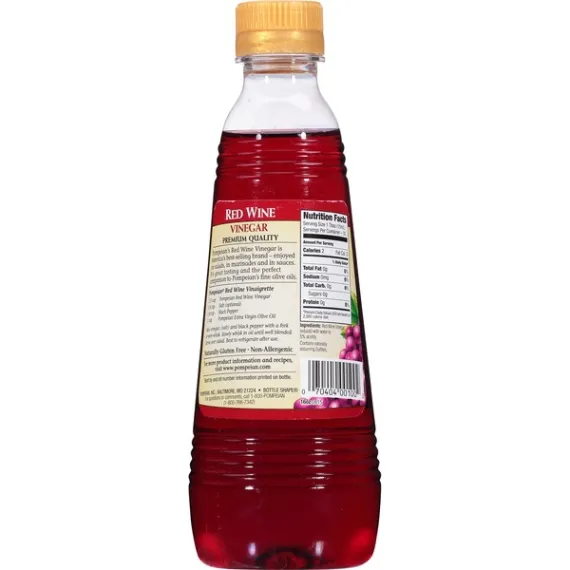 Details Ingredients RED WINE VINEGAR REDUCED WITH WATER TO 5% ACIDITY. Product features PMPN RED NON ALRGN WN VNGR BTL Red Wine Vinegar Gourmet. Premium quality. Quality since 1906. Pompeian Red Wine Vinegar is America's best selling brand - enjoyed on salads, in marinades and in sauces. It's great tasting and the perfect companion to Pompeian's fine olive oils. Naturally gluten free; non-allergenic. Special Features Premium quality Net Quantity of Content 32 X 1 Tbsp