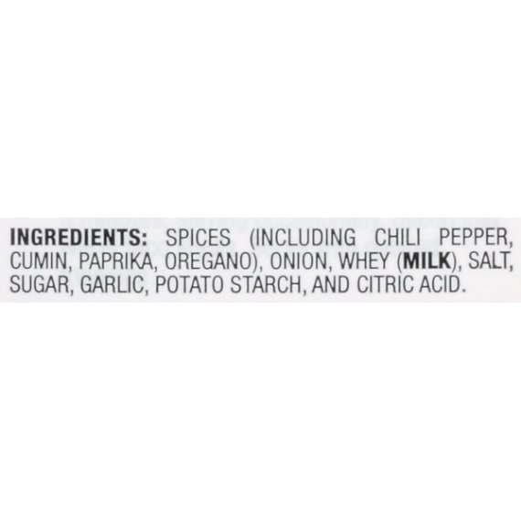 Details Ingredients SPICES (INCLUDING CHILI PEPPER, PAPRIKA, OREGANO), ONION, SALT, POTATO STARCH, SUGAR, GARLIC AND CITRIC ACID. Product features McCormick Culinary Taco Seasoning is a zesty blend of premium, authentic Mexican spices and herbs, including onions & peppers. Specially made for chefs to inspire extraordinary menus and deliver consistent recipes. Add the unique appeal of South-of-the-Border cuisine to your menu without the added MSG. Add to ground beef, turkey, chicken or vegetables for unforgettably delicious tacos, fajitas, quesadillas, enchiladas, nachos, and more. McCormick Culinary is our essential collection of premium spices, herbs, and seasonings, specially made for chefs. Our global sourcing team enables unparalleled control and understanding of our supply chain, ensuring every McCormick Culinary product delivers a pure and consistent flavor, dish after dish, and service after service. Zesty blend of premium, authentic Mexican spices and herbs Add to ground beef, turkey, chicken, or vegetables when preparing Mexican cuisine Brought to you by McCormick Culinary, the premium quality brand that delivers consistent, pure flavor Tailored for culinary professionals, helping to inspire menus No MSG added Net Quantity of Content 113.0 X 6