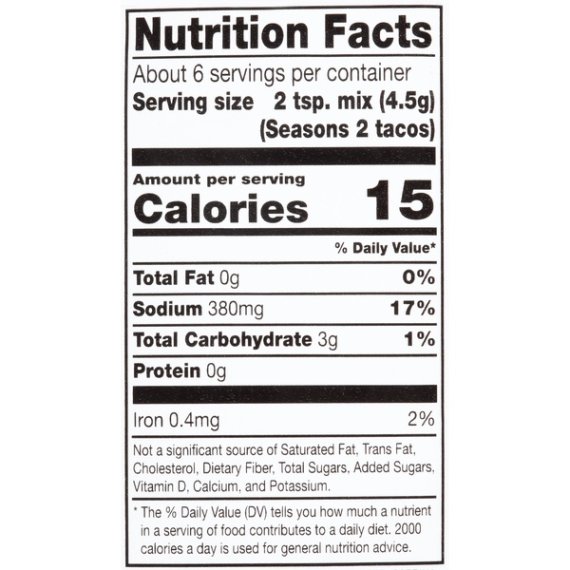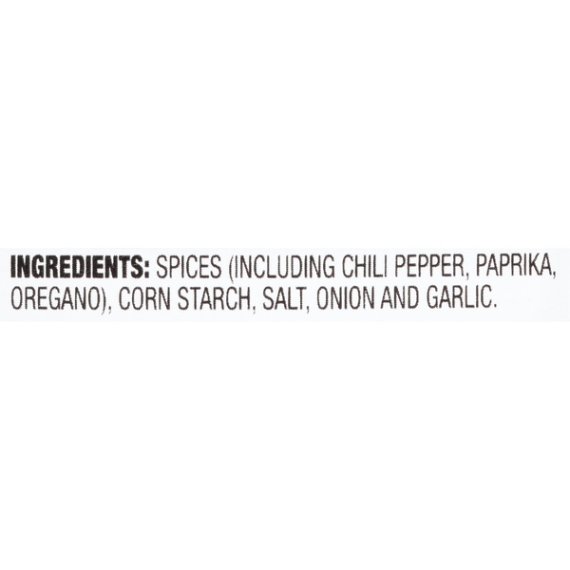 Details Ingredients Spices (Including Chili Pepper, Paprika, Oregano), Onion, Salt, Potato Starch, Sugar, Garlic, & Natural Flavor. Product features Turn dinner into fun-filled fiestas with McCormick Taco Seasoning! Sprinkle our signature blend of herbs and spices into your favorite taco ingredients to create hearty meal your family will request again and again. With this expertly blended seasoning, it's easier than ever to put together a homemade meal any night of the week. Made with McCormick herbs and spices, you can use our Taco Seasoning blend knowing that you are you're giving your family the very best. Perfect easy taco seasoning mix Made with McCormick herbs and spices No MSG, artificial flavors or colors Expert spice blend makes family-favorite tacos every time From America's #1 herb and spice brand Net Quantity of Content 6.0 X 4.5