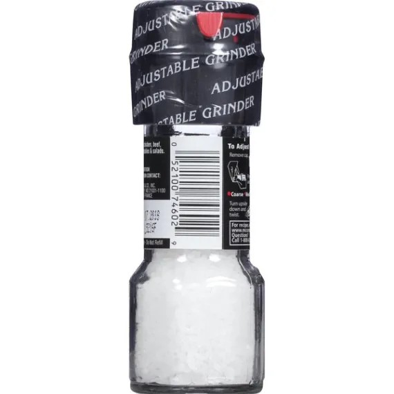 Details Ingredients Sea Salt Product features The salt crystals in McCormick Sea Salt Grinder are naturally harvested from the French Mediterranean. The adjustable grinder conveniently offers a coarser grind for seasoning meats or a finer grind for dishes like pasta or eggs. Sea salt is coarser than table salt, with a higher concentration of minerals for enhanced flavor. With this salt grinder, you can adjust the grinder for perfectly ground sea salt to suit your taste or recipe. Use the coarse grind for bold texture in meat rubs. Adjust to a finer grind for potatoes, sauces or soups. Keep it at the table to season all your foods. Its sodium level is comparable to table salt. This salt does not supply iodine, a necessary nutrient. Sea salt naturally harvested from the French Mediterranean Adjustable grinder conveniently offers coarse or fine grind; not refillable Use coarse grind for bold texture in meat rubs Use finer grind to sprinkle over potatoes, scrambled eggs, sauces or soups Easy to use: remove cap, adjust grinder to fine or coarse, and twist Sea salt contains more minerals than table salt with comparable sodium levels Keep a salt grinder at the table to season all your foods Special Features This salt does not supply iodide, a necessary nutrient. The taste you trust. Adjustable table grinder. For recipes, visit www.mccormick.com. Questions? Call 1-800-632-5847. Great on chicken, beef, pork, vegetables & salads. For Nutrition Information Contact: McCormick & Co., Inc. Hunt Valley, MD 21031-1100. Product of France.