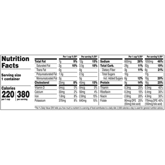 * Percent Daily Values are based on a 2,000 calorie diet. Your daily values may be higher or lower depending on your calorie needs.