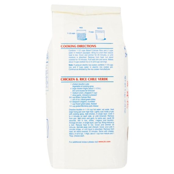 Details Ingredients Milled Rice. Product features Easily create side and main dishes with Botan Calrose Rice in a 5 lb bag. It's grown in the rich fertile soil and crystal clear water of California. This calrose medium grain rice is easy to prepare by just adding water and boiling. It's made using updated milling technology for a tender texture and delicate flavor that makes it versatile for numerous cuisines. This extra fancy rice is specially selected to ensure the finest quality. Botan Calrose Rice, 5 lb: U.S. No. 1 extra fancy Updated milling technology Just add water and boil Musenmai Specially selected grains Quick and easy to cook Non-GMO Project verified Grown in the fertile soil and clear water of California Tender texture and delicate flavor, ideal to serve with a variety of dishes Package contains 5 lbs of extra fancy calrose rice For additional recipes write to: Rice Recipes, JFC International Inc., 7101 East Slauson Avenue, Los Angeles, CA 90040-3622 Special Features Product Of USA Net Quantity of Content 50 X 45 G
