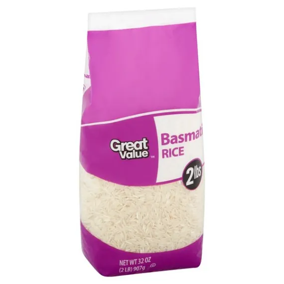 Details Ingredients Basmati Rice Product features Great Value Basmati rice is a variety of long-grain Indian rice. This high quality rice has a sensational aroma and a rich texture that enhances the quality of your home cooked Indian and South Asian cuisines. Use it to make lemon garlic rice, turmeric coconut rice and chicken biryani. Serve it with chicken tikka and naan for a delicious and authentic meal. Stir in your favorite meats, vegetables and spices to create a more personalized meal. Basmati rice has no saturated fat, trans fat, cholesterol, sodium or sugar. It's a great low calorie source of protein and other vitamins and minerals. This rice is gluten-free making it a great option for individuals sensitive to gluten. This two pound bag makes it easy to stock up on your favorite rice. Indulge yourself with the authentic flavors of Great Value Basmati Rice. Great Value products provide families with affordable, high quality grocery and household consumable options. With our wide range of product categories spanning grocery and household consumables, we offer you a variety of products for your family's needs. Our products are conveniently available online and in Walmart stores nationwide, allowing you to stock up and save money at the same time. Great Value Basmati Rice: Product of India Gluten-free Kosher Net weight 2 lb Net Quantity of Content 20 X 1/4 Cup Dry (45g)