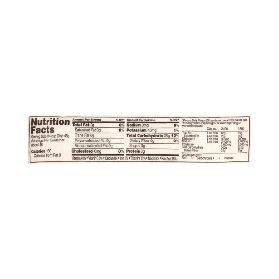Details Ingredients LONG GRAIN RICE, ENRICHED WITH FERRIC PHOSPHATE, NIACIN, THIAMINE MONONITRATE, FOLIC ACID (A B VITAMIN). Product features Create delicious, hearty meals your whole family will love with this Great Value Long-Grain Enriched Rice. This classic ingredient has an extended shelf life to provide long-lasting performance. Made with the highest quality ingredients, Great Value rice contains 0g of trans fat per serving. It is a versatile cooking item to keep on hand and pairs well with a variety of different dishes. Feature it as a satisfying side dish flavored with your favorite herbs or fresh vegetables. It is also well-suited to serve as part of the main course and tastes wonderful in casseroles, soups, stews and more. With detailed cooking instructions on the package, it is easy to make and features a filling and fluffy texture. The 16-oz bag stores compactly for your convenience. Great Value Long Grain Rice, 16 Oz Special Features Extra fancy Net Quantity of Content ABOUT 10 X 0.25 cup