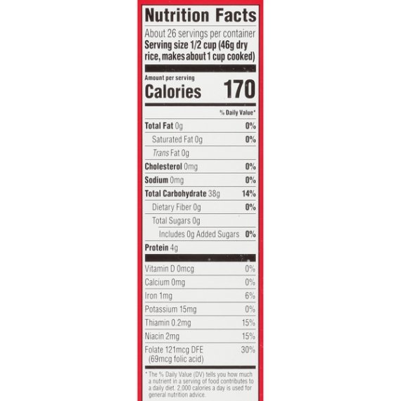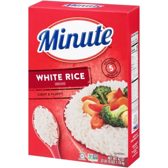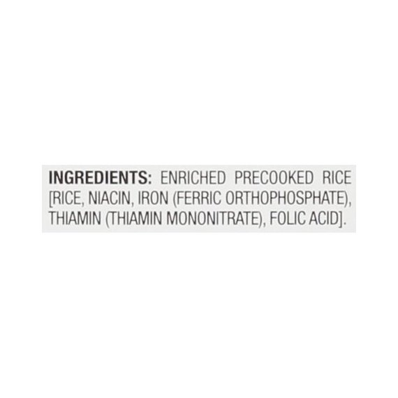 Details Ingredients ENRICHED PRECOOKED LONG GRAIN RICE [RICE, NIACIN, IRON (FERRIC ORTHOPHOSPHATE), THIAMIN (THIAMIN MONONITRATE), FOLIC ACID]. Show more Product features Minute Instant White Rice is a delicious addition to any meal. It is made with no preservatives or MSG and is both gluten-free and non-GMO, so you can rest assured that our products are made with your health in mind. In just 5 minutes, you'll have delectable rice that is sure to enhance any meal. This long grain rice is enriched, precooked, and then dried with nothing added but pure convenience. Feel free to get creative with dinner by adding veggies, proteins or sauces to your rice or cook the rice in broths/fruit juices in place of water. Each order includes one 42-ounce box of instant rice at the ready! Minute Rice is part of Riviana Foods, Inc. and, since 1949, has consistently brought the goodness of quality rice products right to the American farmer and right to your dinner table. Delight your taste buds, enjoy your meal, and love every Minute! Easy-to-make long grain rice for a variety of healthy dishes Cooks up in just 1 minute! Non-GMO Project Verified and Kosher Completely gluten-free Made with zero preservatives Great for those with an eye on their cholesterol as well as on the time! Includes one 42-ounce box of instant enriched rice Special Features Cholesterol free Net Quantity of Content ABOUT 26 X 0.5 cup