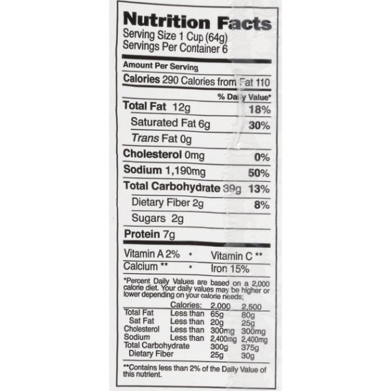 * Percent Daily Values are based on a 2,000 calorie diet. Your daily values may be higher or lower depending on your calorie needs.