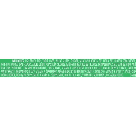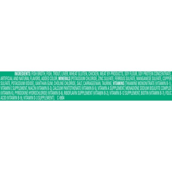 Details Ingredients Fish Broth, Fish, Trout, Liver, Wheat Gluten, Chicken, Meat By-Products, Soy Flour, Soy Protein Concentrate, Artificial and Natural Flavors, Added Color, Potassium Chloride, Xanthan Gum, Choline Chloride, Carrageenan, Salt, Taurine, Mono and Dicalcium Phosphate, Thiamine Mononitrate, Zinc Sulfate, Vitamin E Supplement, Ferrous Sulfate, Niacin, Copper Sulfate, Calcium Pantothenate, Manganese Sulfate, Vitamin A Supplement, Menadione Sodium Bisulfite, Complex (Source of Vitamin K Activity), Pyridoxine Hydrochloride, Riboflavin, Supplement, Vitamin B-12, Supplement, Biotin, Folic Acid, Vitamin D-3 Supplement, Potassium, Iodide. Show more Product features Tempt your cat's taste buds with the irresistible flavor of Purina Fancy Feast Flaked Trout Feast wet cat food. High-quality fish gives her the seafood taste cats crave, and the tender flaked bits provide her with a texture sure to delight her palate. Essential vitamins and minerals help to promote her overall health and wellness, and the scrumptious flakes of fish offer a visual cue letting her know something special is waiting for her at mealtime. Feel good about the food you serve your cat with every can of this gourmet cat food, and take comfort in knowing she's getting 100% complete and balanced nutrition. With quality ingredients and uncompromising taste, this Purina Fancy Feast blend is a true feast worthy of your sophisticated cat. You're careful about what you feed your cat, so choose a trustworthy name when you buy Fancy Feast. Let her experience the full range of flavors found in the Purina Fancy Feast Flaked line for a variety of meals she's sure to lick her paws for. 100% complete and balanced nutrition for adult cats and kittens High-quality fish delivers rich flavor Tender flaked bits create a tempting texture cats crave Essential vitamins and minerals help to support her overall health and wellness Prepared with high-quality ingredients Special Features 100% complete And balanced