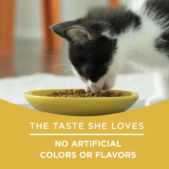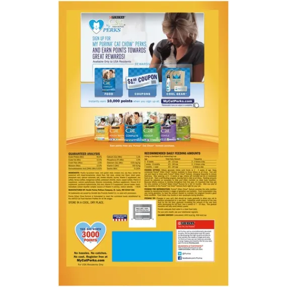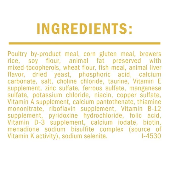 Details Ingredients Poultry By-Product Meal, Corn Gluten Meal, Brewers Rice, Soy Flour, Animal Fat Preserved With Mixed-Tocopherols, Wheat Flour, Fish Meal, Animal Liver Flavor, Dried Yeast, Phosphoric Acid, Calcium Carbonate, Salt, Choline Chloride, Taurine, Vitamin E Supplement, Zinc Sulfate, Ferrous Sulfate, Manganese Sulfate, Potassium Chloride, Niacin, Copper Sulfate, Vitamin A Supplement, Calcium Pantothenate, Thiamine Mononitrate, Riboflavin Supplement, Vitamin B-12 Supplement, Pyridoxine Hydrochloride, Folic Acid, Vitamin D-3 Supplement, Calcium Iodate, Biotin, Menadione Sodium Bisulfite Complex (Source Of Vitamin K Activity), Sodium Selenite. I-4530. Show more Product features Show your kitten her nutrition matters to you with Purina Kitten Chow Nurture dry kitten food. With each helping, she gets essential nutrients like those found in mother's milk to help her grow healthy and strong. Protein in this Nurture recipe, derived from real chicken, helps support the development of lean muscles so she can maintain her playful lifestyle. Because this dry kitten food is made with high-quality ingredients and is cooked with care, you can rest easy knowing she's getting quality nutrition in her dish every day. The delicious flavor gives her the taste she wants along with a formula made without artificial flavors or colors. You both get something to feel good about at mealtime with this Kitten Chow dry kitten food that's formulated to encourage a healthy appetite. Nurture your growing kitten by giving her the 100% complete and balanced nutrition she needs to help her live a long, healthy life with you. 100% complete and balanced nutrition, formulated for kittens Contains essential nutrients like those found in mother's milk DHA helps to support brain and vision development Protein helps supports the development of lean muscles Antioxidants help support her healthy immune system