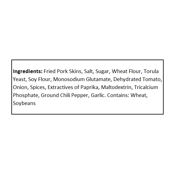 Details Ingredients FRIED PORK SKINS, SALT, SUGAR, WHEAT FLOUR, TORULA YEAST, SOY FLOUR, MONOSODIUM GLUTAMATE, DEHYDRATED TOMATO, ONION, SPICES, EXTRACTIVES OF PAPRIKA, MALTODEXTRIN, TRICALCIUM PHOSPHATE, GROUND CHILI PEPPER, GARLIC. Show more Product features These Mac's Bar-B-Q Flavored Pork Skins are a delicious treat that is fun to eat. They have a distinctive taste and pack a powerful crunch. The salty snacks are made with wheat flour and mixed with dehydrated tomatoes and onions. The recipe also includes extracts of paprika and ground chili pepper and garlic to deliver a yummy flavor. They are a practical choice for those who prefer low-carbohydrate foods or are on a low-carb diet. This 5-oz bag of Mac's pork skins contains 10 servings at 80 calories each with zero grams of carbohydrates and trans fats. Mac has been making quality pork skins since 1932. Take one bite of these chicharrones, and you will discover why Mac has received accolades for their award-winning flavor. Mac's Bar-B Q Flavored Pork Skins, 5 Oz Special Features NOT STATED Net Quantity of Content 10 X 0.5 oz