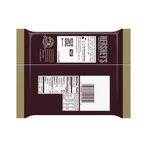 Details Ingredients Milk Chocolate [Cane Sugar, Milk, Chocolate, Cocoa Butter, Milk Fat, Lecithin (Soy), Natural Flavor], Chopped Almonds, Sunflower Oil. Product features HERSHEY'S Milk Chocolate with Almonds Bars are more than just candy bars. They bring moments to stop and savor life’s sweeter side, so stock up, enjoy, and even share, these delicious bars of milk chocolate with roasted almonds. HERSHEY'S Milk Chocolate with Almonds Bars, 6 Count, 8.7 Ounces : Perfect for snacking, baking, and sharing Simply unwrap and enjoy, or use as party favors Milk chocolate with roasted almonds Gluten-free and kosher chocolate bars Note: Because this item is temperature-sensitive, we recommend shipping it using Expedited Shipping (2 to 3 business days) or Rush Shipping (1 business day). Special Features With almonds Net Quantity of Content 6 X 1 Bar (41g)