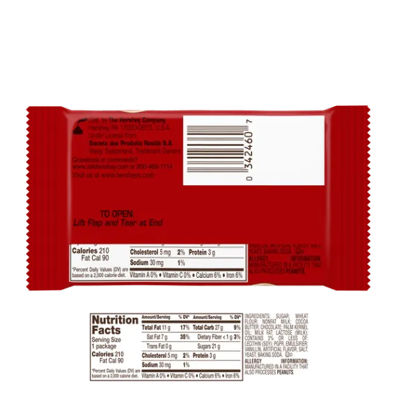 Details Ingredients Sugar, Wheat Flour, Nonfat Milk, Cocoa Butter, Chocolate, Palm Kernel Oil, Milk Fat, Lactose (Milk), Contains 2% or Less of: Lecithin (Soy), PGPR, Emulsifier, Vanillin, Artificial Flavor, Salt, Yeast, Baking Soda. Show more Product features With the delicious combination of smooth milk chocolate and light crispy wafers, KIT KAT® Wafer Bars are fun to eat and perfect for sharing. Stock up on KIT KAT® Wafer Bars for delicious snacking at home, at work, and on the go. Kit Kat, Milk Chocolate Wafer Bar, 1.5 Oz: Perfect for everyday snacking, sharing and gifting Layers of crisp wafers covered in milk chocolate Delicious on their own or as edible party decor and favors Kosher candy bars Net Quantity of Content 1 X 42.00 g